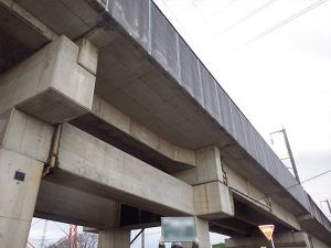 経年劣化により、剥落コンクリートで災害が起きない様にネットを張って予防します。